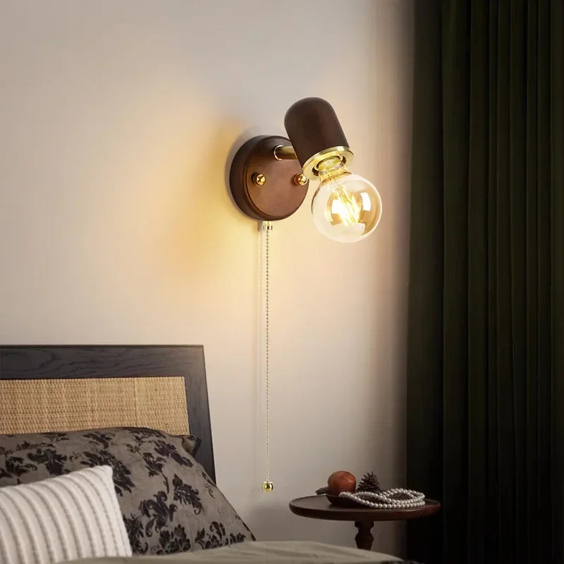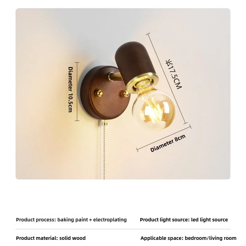 LED Dining Room Lighting Simple Solid Wood with Switch Bedside Wall Lamp Living Room Balcony Corridor Coffee Shop Wall Lamp - Pull switch / Warm White (2700-3500K)
