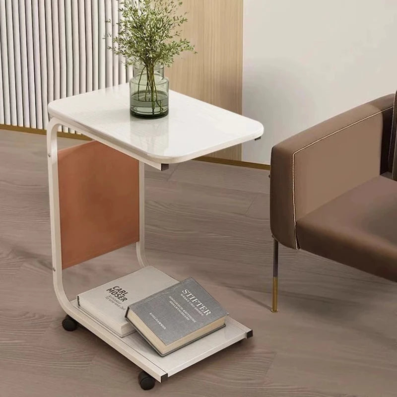 Side Table for Living Room, Mobile Coffee Table, C-shaped Sofa Side Cabinet, Simple Small Square Table, Bedroom Bedside Table - White